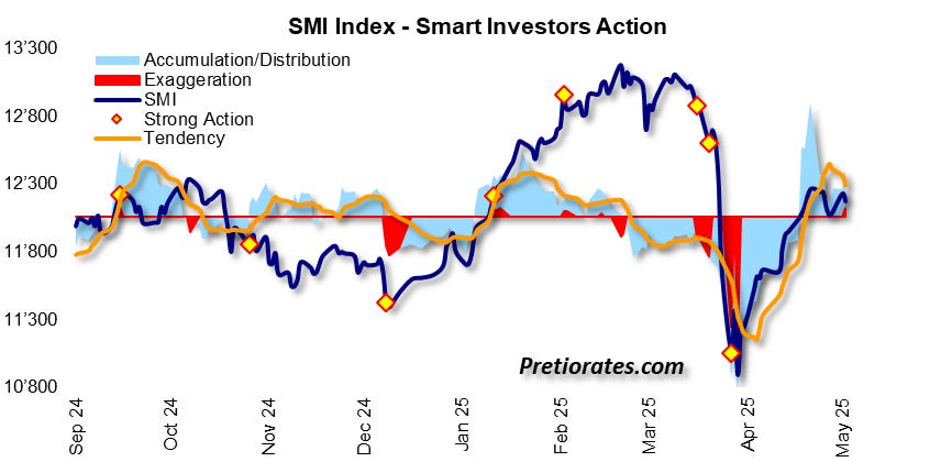 And Switzerland? Yes, it is also playing along – but with the handbrake on. The market is dominated by defensive heavyweights such as Nestlé, Novartis, and Roche. Defensive stocks are currently in low demand, and the pharmaceutical sector is facing additional headwinds from Washington: Trump wants to lower drug prices. The result: accumulation here too – but much more subdued than in other regions of the world.