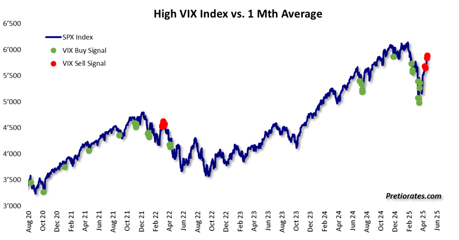 Even the VIX volatility index is jumping on the bandwagon and sending more sell signals. These are rare – the last one was in March 2022 – but they are convincing....