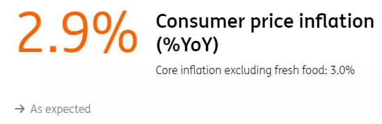 Headline inflation edged down to 2.9% year-on-year in November (versus 3.0% in October, and 2.9% market consensus) while core inflation, excluding fresh food, stayed at 3.0% for the third consecutive month.