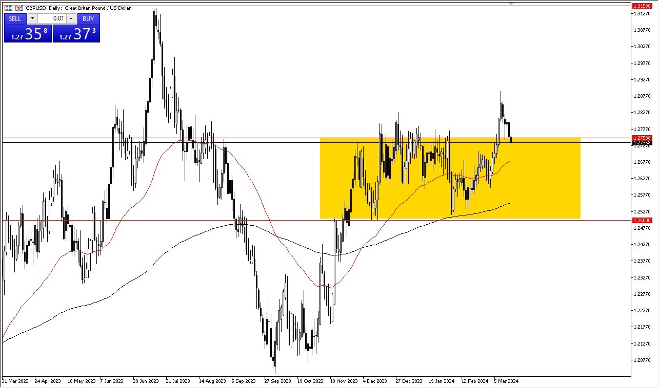 If we can break above the 1.2790 level, then I believe that the British pound will turn around to take off to the upside. If that happens, then I believe that the British pound could you look into the 1.29 level. After that, we have people running to the 1.3150 level, an area that has been in Porton more than once. With that being said, you need to be very cautious but I do think that given enough time we have a situation where traders will continue to look at this as a market that has recently broken out, and now the question will be whether or not it is a market that has any follow-through. As things stand right now, you could make an argument for it being a breakout and a retest just waiting to happen.