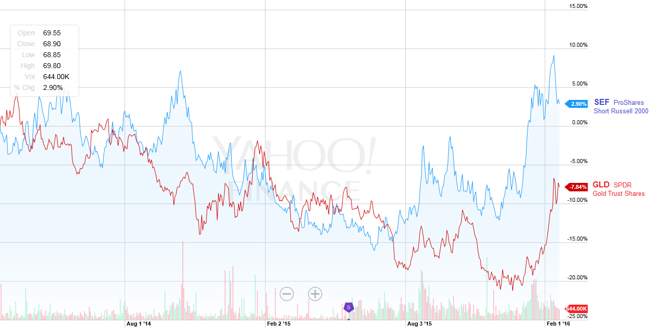 So is gold just being inverse to the broad stock market? Let's take a good measure of that with the 2000 stocks of the Russell:
