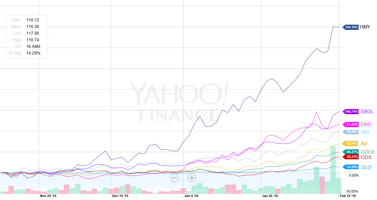 The time tested proverb "A gold mine is a hole in the ground with a liar at the top" is generally attributed to Mark Twain, although he may have just popularized it. The last few years, he has a lot of company in feeling that way. Other than the coal miners, gold miners have probably been the most despised stock sector on earth the last 3 years. But then along comes the surprise January beat down in the stock market, and gold is showing some signs of life. A passing two month start-of-the-year blip some are saying, just like the start of every year since 2011, except for 2013, the crash year for gold. But there are some big differences this time at the start of 2016.