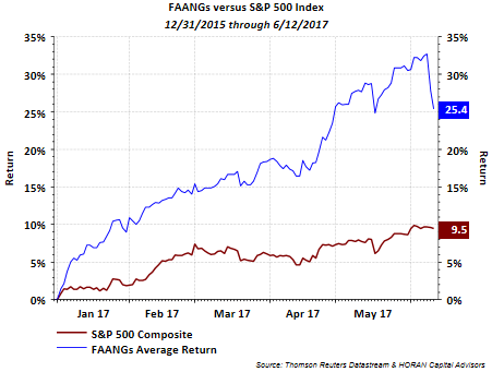 On a year to date time frame, the FAANG pullback looks steep, but the basket's average return still exceeds 25%.