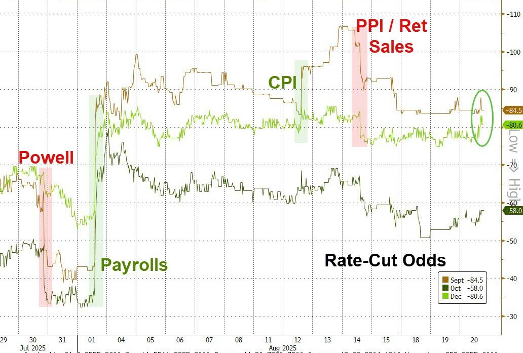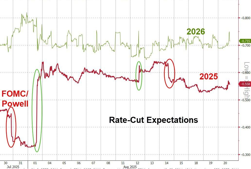 Since the last 'dovish' FOMC statement (and Powell's post-statement 'hawkish' presser) on July 30th, we have had 'cool' payrolls print and 'hot' inflation prints with retail sales mixed... and now everyone is anticipating Friday's speech by Powell at Jackson Hole. So, maybe these Minutes will be a nothingburger...