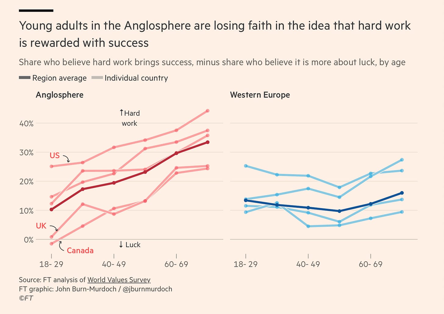 John Burn Murdoch points out that young people are extremely unhappy in the Western world because society broke its promise of a home them - there is no faith in the future of the system, so people turn to ripping each other apart.