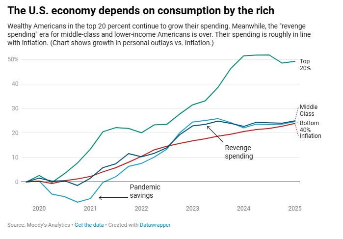 The economy is dependent on data centers really working and continued consumption by the very wealthy as Heather Long wrote about recently. There is no in-between.