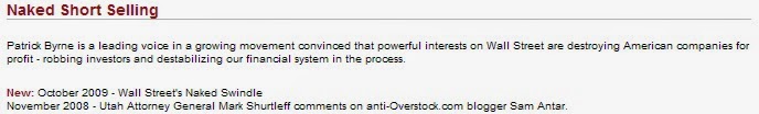 The news was no surprise to me and other long-time critics of Overstock.com. Since 2006, my blog has exposed lies to investors by Patrick Byrne dating back to 1999 and a series of illegal accounting maneuvers used by Overstock.com to materially overstate its earnings and report phony profits when it was losing money. My accounting analysis was proven correct by the company's later revisions of accounting practices and restatements of financial reports. In many cases, those corrections were forced upon it by the Securities and Exchange Commission. Back in October 2007, Patrick Byrne was desperate to discredit me, hoping I would quit investigating his illegal actions. Byrne went as far as to bribing then serving Utah Attorney General Mark Shurtleff to write a defamatory open letter about me that was republished by Overstock.com as part of a press release.