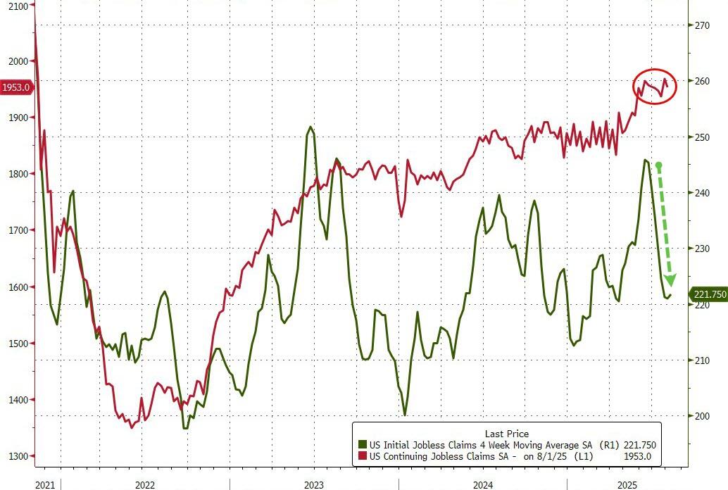 Continuing jobless claims remain above the 1.9 million Maginot Line...