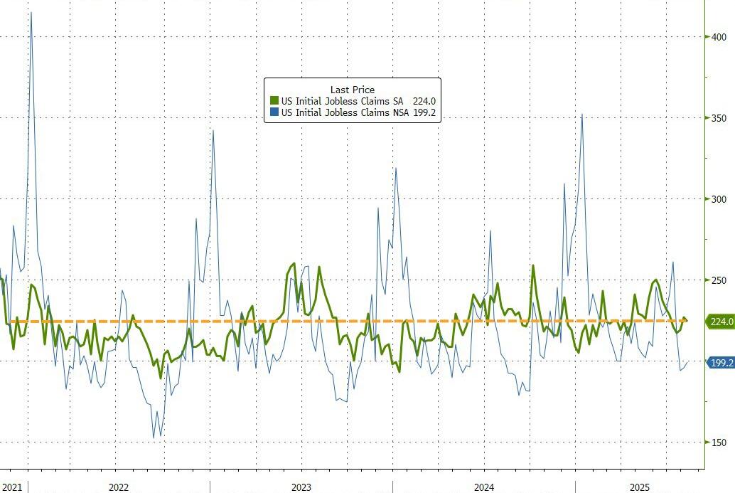 Initial Jobless Claims remain muted, at the same level (224k) they were at in Nov 2021 (with non-seasonally adjusted claims hovering near record lows)...