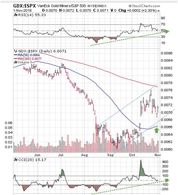 Next is a chart that compares gold mining stocks (GDX) to the S&P 500 index.