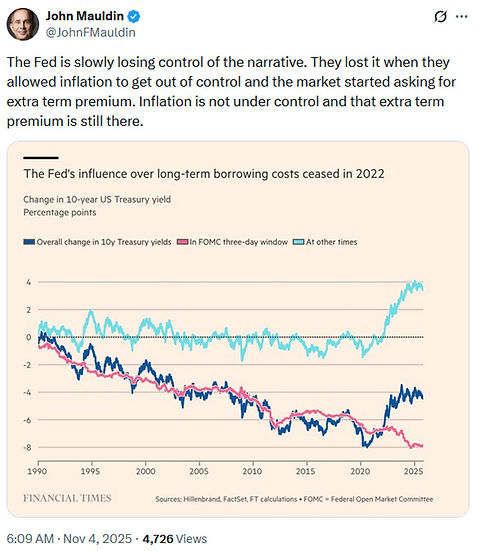 (By the way, I have been fairly consistent in calling out liberal economists for their problematic economic views. Similarly, the ideas Fed Governor Steve Miran espouses in promoting his maximum rate cut views are just not grounded in conservative economic thought. I have no idea how he comes to his conclusions, and I am not alone in that view. If we were to adopt Steve Miran’s view, we would see higher inflation and unemployment. We may take that up in a future letter. Economic philosophy is important.)