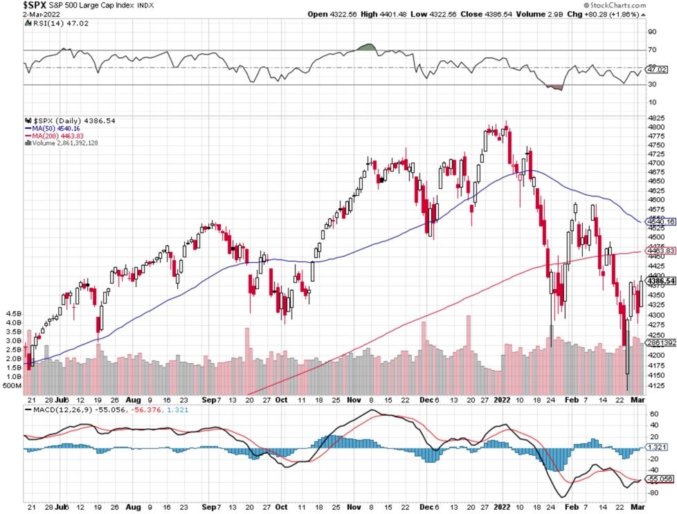 I'd think it's the squeezed Russian oligarchs that might come into play, in any event I thought the market was likely to get a rebound post State of the Union, and sure we got that. Also it was fairly broad, although most small caps didn't change. I was not displeased with Powell's comments, which sort of took the anxiety as relates to current Fed meeting off the table a bit.