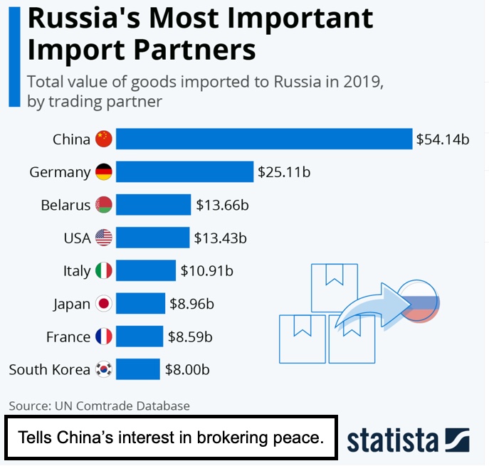 Negotiations loom we suspect, and China is behind pushing for that. While of course China may talk about aspirations of a separate financial system, they are smart and know its not the time for anything like that now. Plus they trade with all the parties in this conflict, plus the entire Western World, so there's a self-interest in calming Russia down.