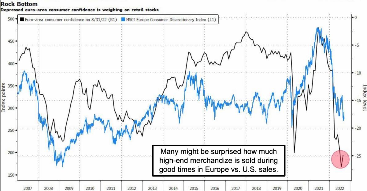 Of course there will be stocks deviating stocks from simply lower multiples as this unfolds, and it's unreasonable to suggest the Fed Chairman will adhere in a draconian way to higher rates next year. If indeed you don't get a rate cut in 2023, and it's delayed until 2024 as Goldman's Hatzius suggested today, well that requires resetting expectations even lower, but mostly for 'Grand Dames' in the S&P and/or NDX, not generally the bulk of stocks already crushed.