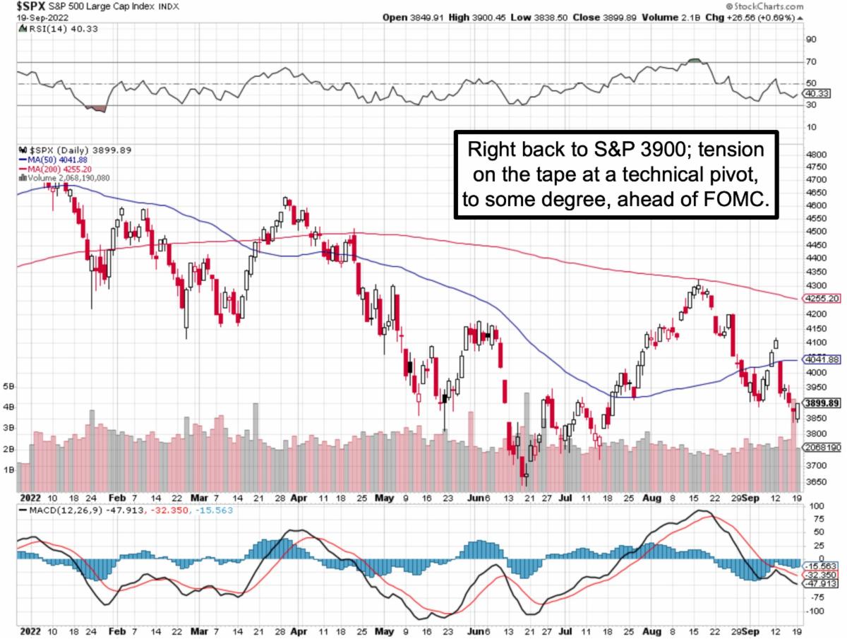 Incredibly, yet-again S&P finished Monday right at the 3900 level. More pain, presumably absent news (such as on the war or something else), is coming, but not necessarily in a linear fashion. Especially if Powell doesn't shock us in the form of (say) a full point hike, rather than continuing the stair-step moves.