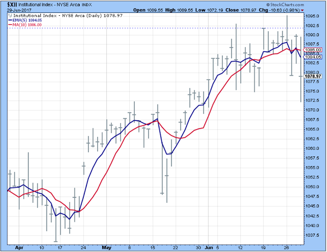 The Institutional Index is showing some short-term weakness. I think this chart confirms a short-term market downturn that probably started on Tuesday.
