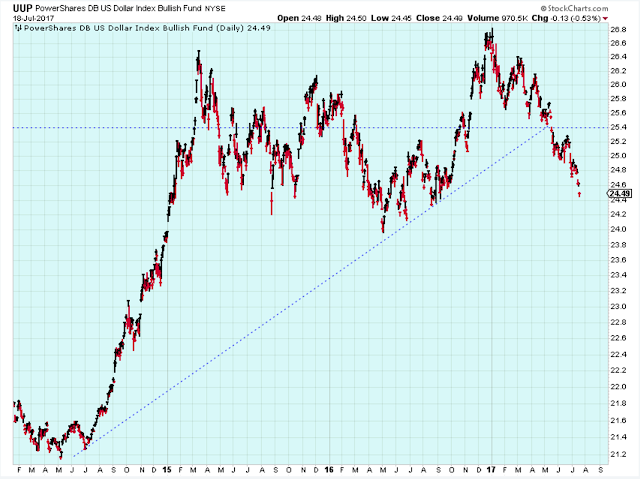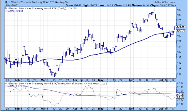 Treasuries are showing strength again. I like this pop up above the 50-day, but TLT is still an under-performer compared to stocks.