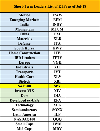 The number of ETF leaders continue to grow. The ETFs in blue and green shown below are the leaders, but the others are very close to being included on the list.