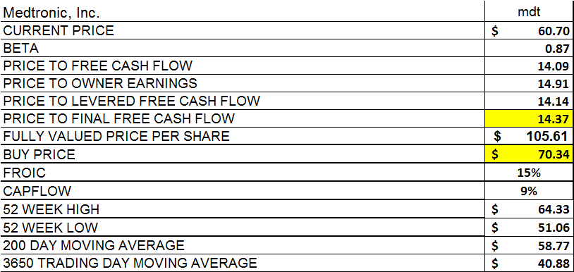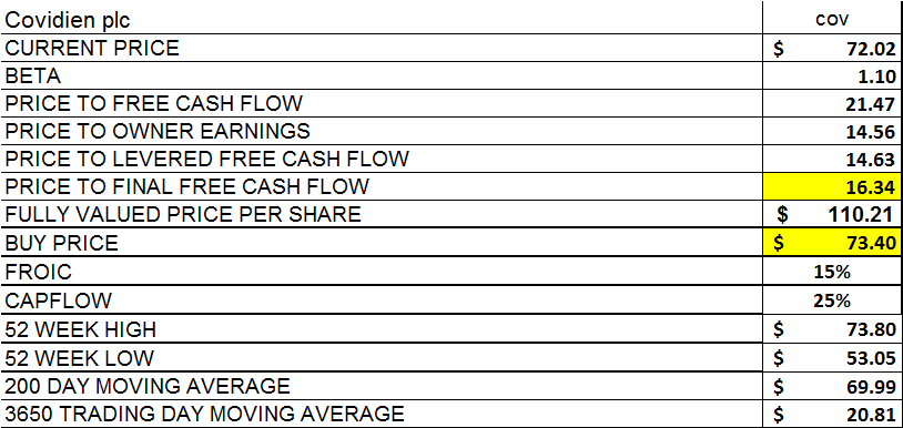 Medtronic plans to pay about $93 a share for Covidien, which is a great deal as my research says that Covidien would be fully valued at $110.21. Therefore you may just see Covidien trade much higher than $93 in the near future as I am sure Johnson & Johnson’s management is not unaware of this deal and may just make an offer as well. Thus ladies and gentleman, we may eventually have a full scale bidding war battle on our hands for control of Covidien. Medtronic must pay whatever they have to in order to get Covidien, because they cannot let it fall into the hands of JNJ. My clients are also shareholders in Johnson & Johnson, so no matter who wins the bidding, in the end we will benefit as either our Medtronic or Johnson & Johnson will continue to benefit from owning Covidien. No matter what happens this is the best result you can hope for as a shareholder.