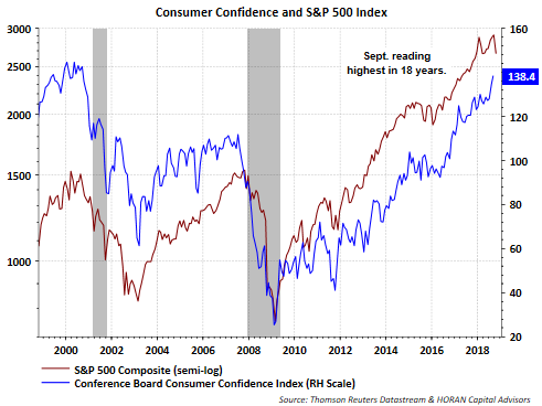 - With a favorable job market and consumer spending continuing to grow, it should not be a surprise that consumer confidence is strong as well. The Conference Board's most recent Consumer Confidence Index report noted,