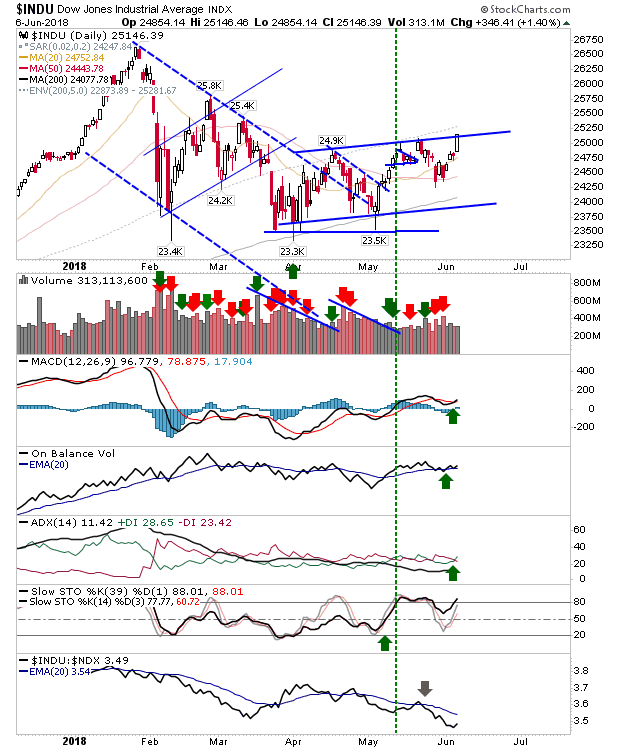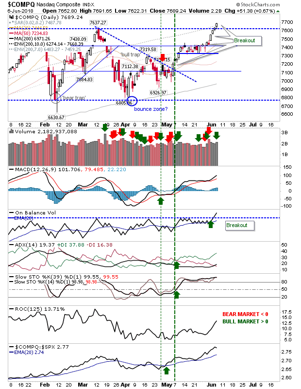The Nasdaq negated the March 'bull trap' with a new all-time highs (supported by a breakout in On-Balance-Volume).