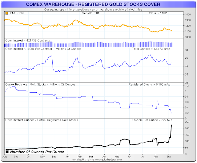 The ratio of potential claims per deliverable (registered) ounce of gold bullion has soared to 228:1.