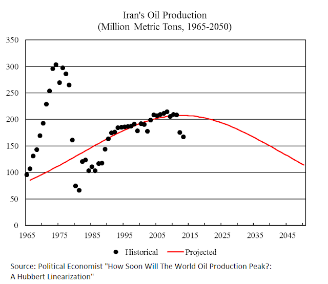 Per this study by Political Economist, these two mega-producers, making about 1/4th the world's supply, severely over-produced in response to the driving demand ups and downs, but the Soviet cold war financing over-production went on long after the driving demand dropped in the mid-'70s. This went on until the Saudi ramp-up drove the Soviet oil industry to ruin in the '90s. Things have since settled back to typical Hubbert dynamics (red curves) as calculated here by Political Economist. But was there field damage?