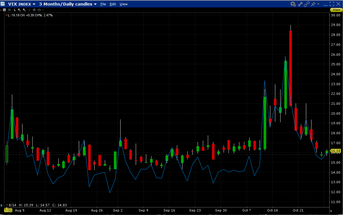 3-Months, VIX (red/green candles), VIX9D (blue)