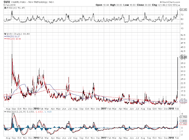 The VIX, a measure of risk and volatility, rocketed higher.It was greatly aided by a short squeeze.The short interest on the VIX was profoundly malinvested against risk.And today that was corrected.