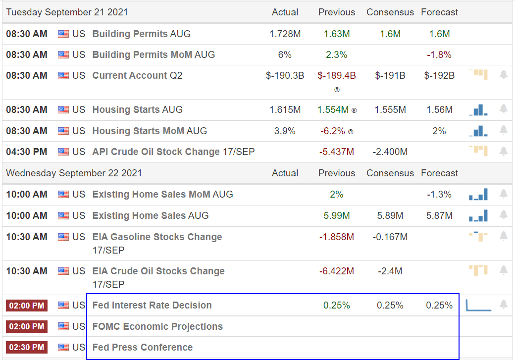 There will be an FOMC rate decision announced tomorrow afternoon, with the attendant press conference and other Delphic pronouncements.