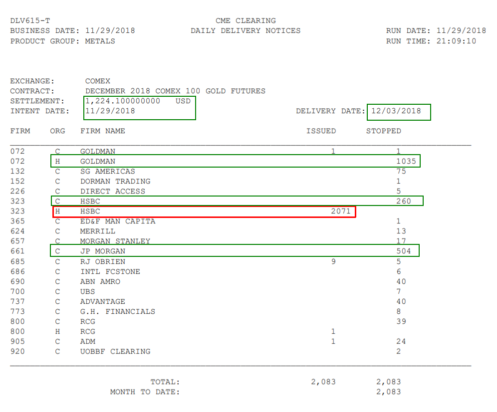 On the related inventory report, you can see that HSBC moved a chunk of gold from the 'eligible' to 'deliverable' category to cover this transaction.