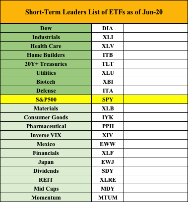 The leader list no longer includes Technology and many of the foreign ETFs.