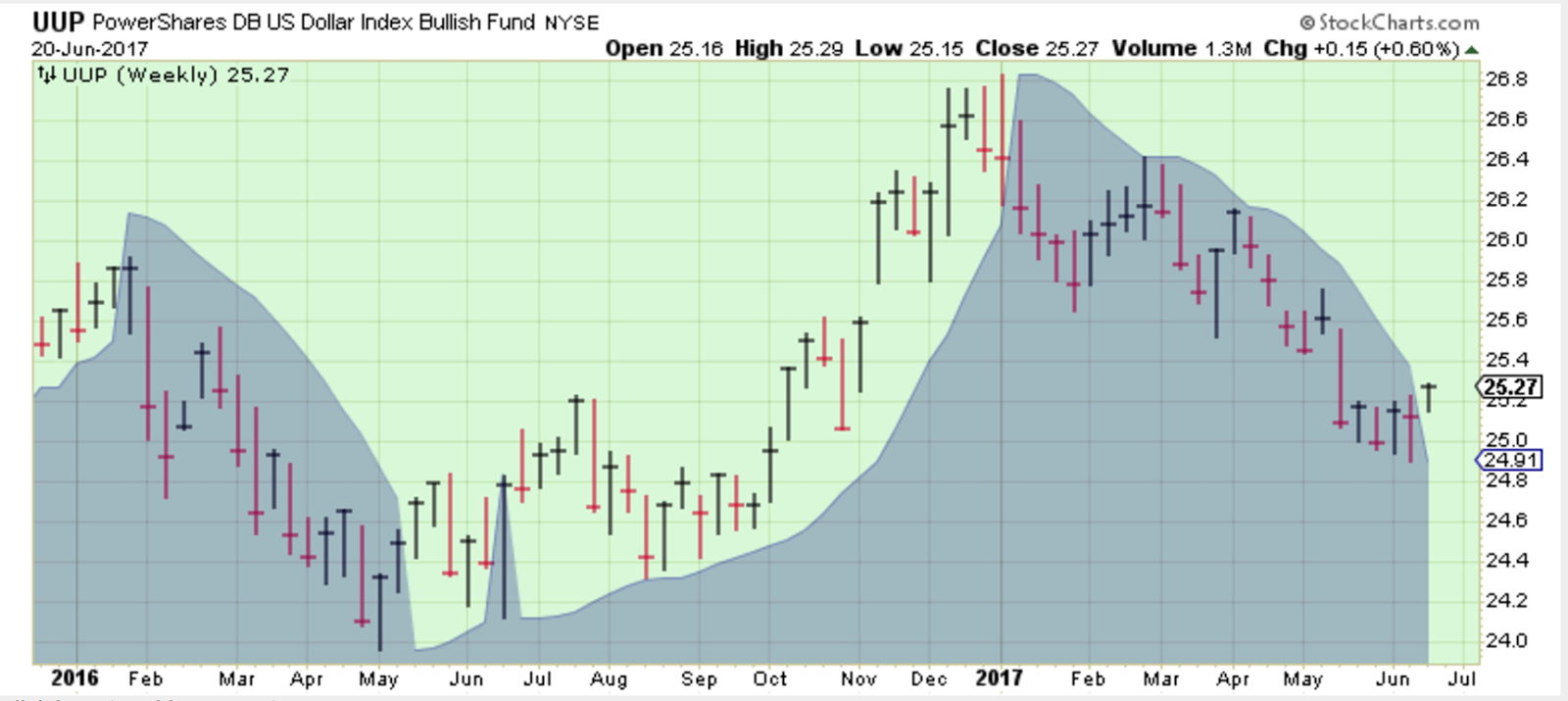 The US Dollar is finally showing some strength. This works against large caps and against foreign stocks.