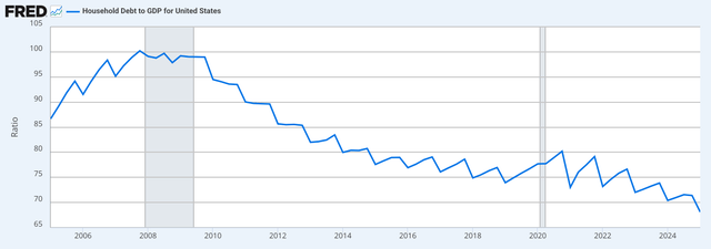 Despite all the press about private debt being “too high” and on the verge of collapsing, the numbers themselves show that private debt is at historically low levels (two charts below). There is lots of room for private debt to grow and provide money to fuel the economy and the stock market.