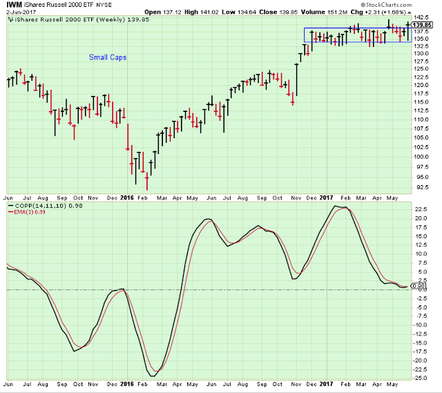 The thing that really got people's attention was the strength in small caps. Last week the small caps looked like they were finally going to break down. But it was just a test of the bottom of the range, and now they are back to testing the top of the range.