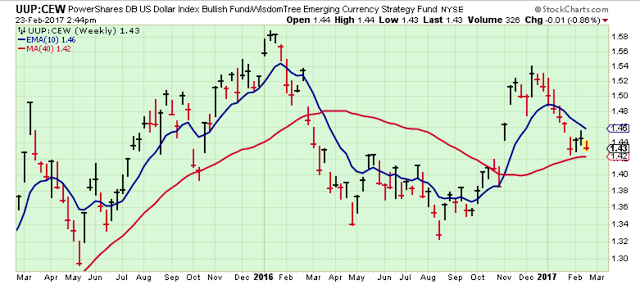 The USD was also strong against Emerging Markets currencies after the election, but so far in 2017, the ratio peaked and reversed.