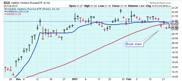 I don't mean to keep picking on RSX, and this is not a weak looking chart. But it is testing the lower range, and energy stocks have been weak.