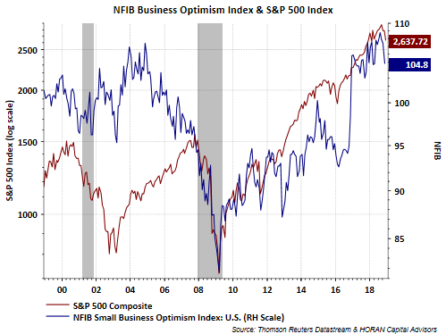 In short, small business optimism remains at a high level and is a positive factor as 2019 approaches. Finding qualified workers seems to be a headwind facing many firms though.