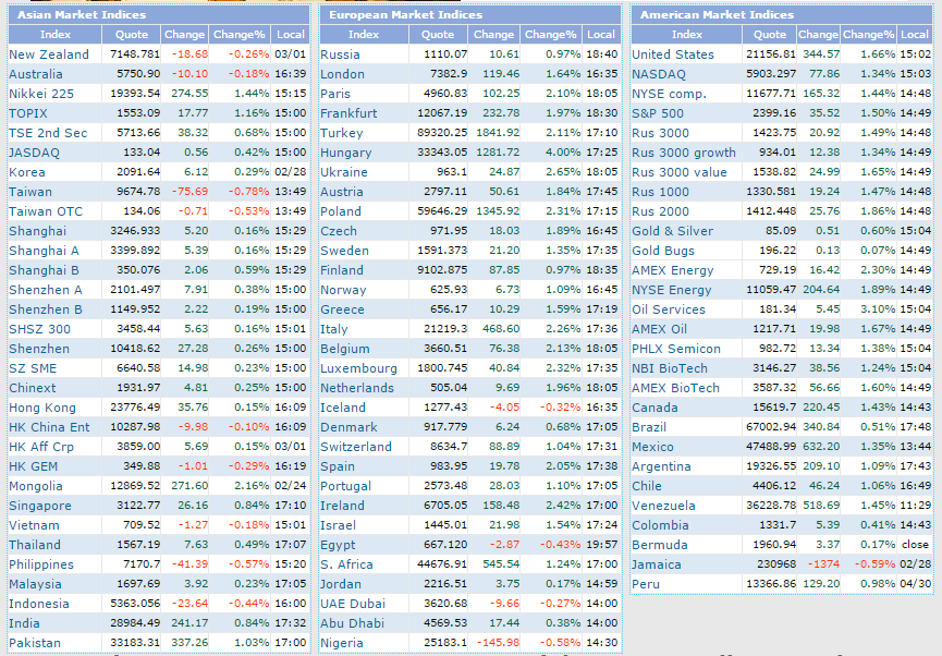 Most world markets were also strong today, especially European markets. We'll see if China picks up the pace in the near future.