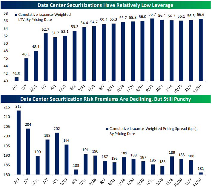 To be clear, there are absolutely credit risks swirling in the data center and AI infrastructure universe. The extreme complexity of the Beignet transaction is a good example. Meta (META) is forming a joint venture with funds controlled by Blue Owl (OWL) that also receive debt funding from PIMCO funds (via the RPLDCI 6.581 05/30/49 bond which is the single largest-ever corporate bond issue). That bond amortizes over time based on cash flows from META itself, which serves as a development partner, cross-guarantor, and tenant of the completed data center. That allows what amounts to debt financing (with some de-risking via the JV with OWL funds) without an impact on the META parent credit rating. These sorts of complex transactions aren’t necessarily a sign of bad things to come, but they do indicate risk.