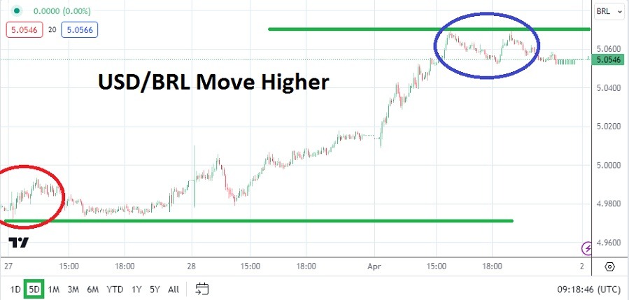 - Volatility is likely to be seen when the USD/BRL starts trading, this as the currency pair is perched at highs not traversed since late October of 2023.