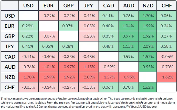 The table below shows the percentage change of Japanese Yen (JPY) against listed major currencies this week. Japanese Yen was the strongest against the New Zealand Dollar.