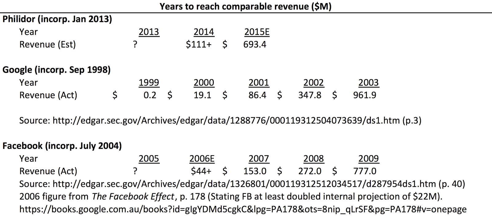 Perhaps you are a jaded Wall Street type who doesn’t find this particularly notable. Well, consider this: over the first three years of meaningful revenue generation, Philidor trounced both Google and Facebook in dollars collected. (Yes, most of this was pass-through to Valeant. ’Twas ever thus.)