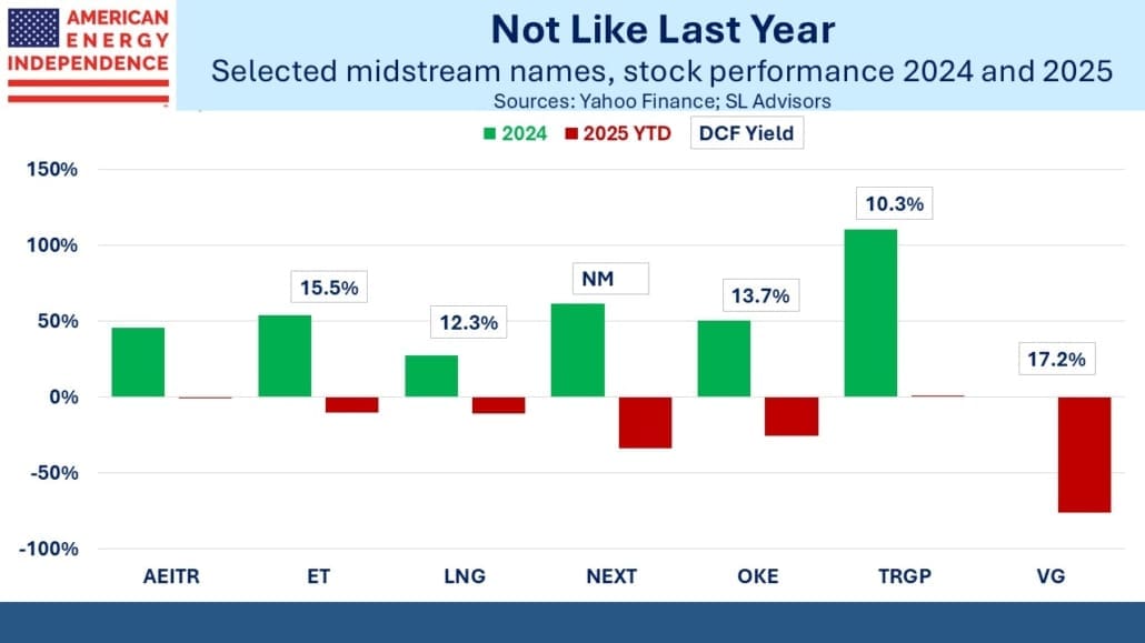 2025 has been frustrating for those who must explain short-term performance in midstream energy stocks – which is to say this blogger, along with many financial advisors whose clients are invested in the sector.