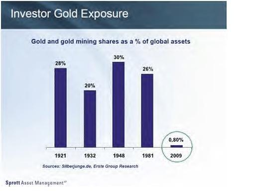 Add to this the extreme low we are at in this age for investor exposure to gold in this time of building currency disarray, and you have a formula for a possible dollar/gold tsunami: