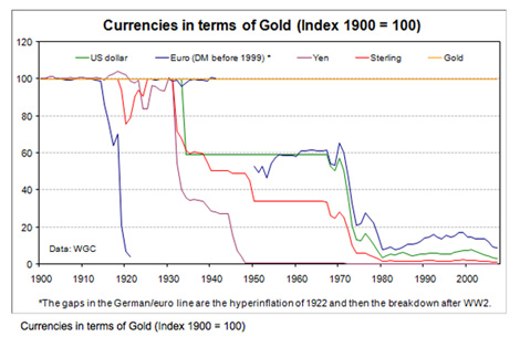 The major currencies of today will go by the wayside before our unsustainable debt situation is cleared up, as all preceding currencies have done - except for gold: