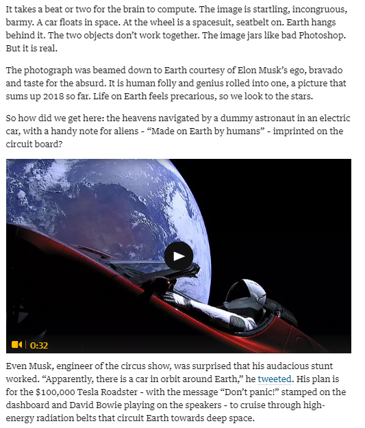 I have a question for Elon Musk (of course it's silly, but a little levity never hurts). Where's the next charging station located for his space-bound Tesla Roadster? 👀