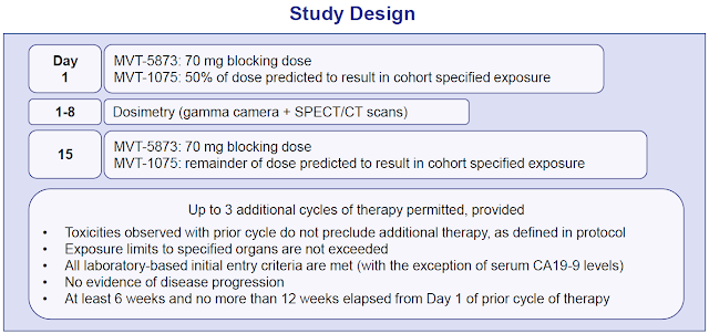 As noted above, the strong initial data with MVT-2163 provide excellent proof-of-concept validation for MVT-1075. MVT-1075 preclinical data is nothing short of fantastic. At AACR in April 2017, company scientists presented a poster showing strong preclinical pharmacology, efficacy, and safety. Similar to the results with MVT-2163, biodistribution data support the company's hypothesis that MVT-1075 targets CA19-9 on the tumor cells with minimal off-target (off-organ) binding. Quite simply, this makes it an ideal therapeutic candidate for difficult to treat, non-resectable cancer.