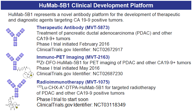 The company is taking advantage of HuMab-5B1's high specificity and minimal off-target binding to develop the drug via multiple pathways: as a therapeutic (MVT-5873), a PET-imaging agent (MVT-2163), and a radioimmunotherapy (MVT-1075) for patients with pancreatic cancer.