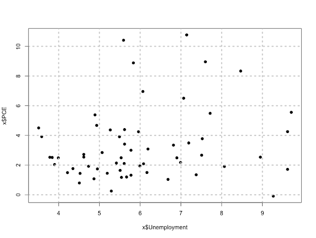 If an economist asked a data scientist to look at the above chart, he would roll his eyes. Data people are used to looking at relationships that have actual power. Now I know that it is possible to construct models using lags and intermediate relationships that have greater explanatory power.